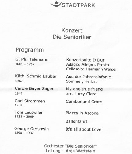 Siehe im Flyer im Anhang: «Finale mit Überraschung» mit der Kontrabass-Solistin Ariane Thomann unter der Leitung von Konradin Herzog ist rund 70 Jahre nach der Komposition eine bemerkenswerte, schweizerische Erstaufführung des „Übermütigen Bassisten“.