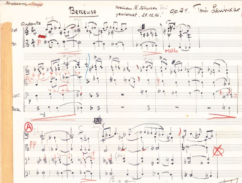 Ausschnitt aus der Original-Partitur von "Berceuce" (Wiegenlied für Toni jun., geb. 04.02.1946):